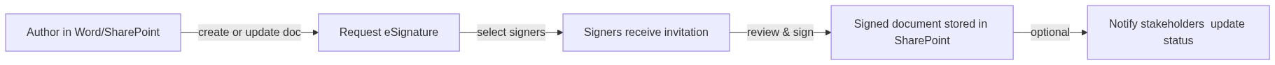“We have a contract as a Word document in SharePoint. We want it signed by one or more people. Once it’s signed, it should live in a ‘Signed Contracts’ library and relevant people should be notified.”