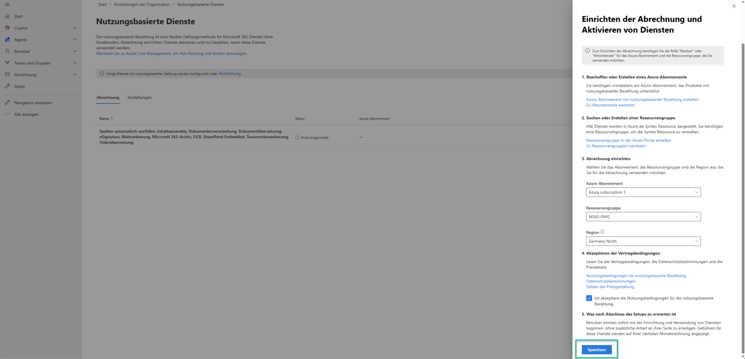 The eSignature feature is part of the broader “pay-as-you-go services for Microsoft 365”. You need to link your M365 tenant to an Azure subscription so usage can be billed.