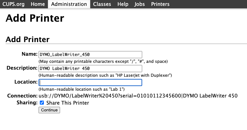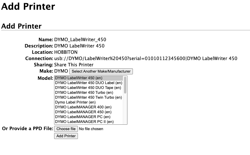 I’m using the DYMO LabelWriter 450 Duo, a reliable workhorse that prints both normal and continuous labels. The device has served me well for years — and with a bit of setup, you can turn it into a fully accessible network label printer using a Raspberry Pi and CUPS.